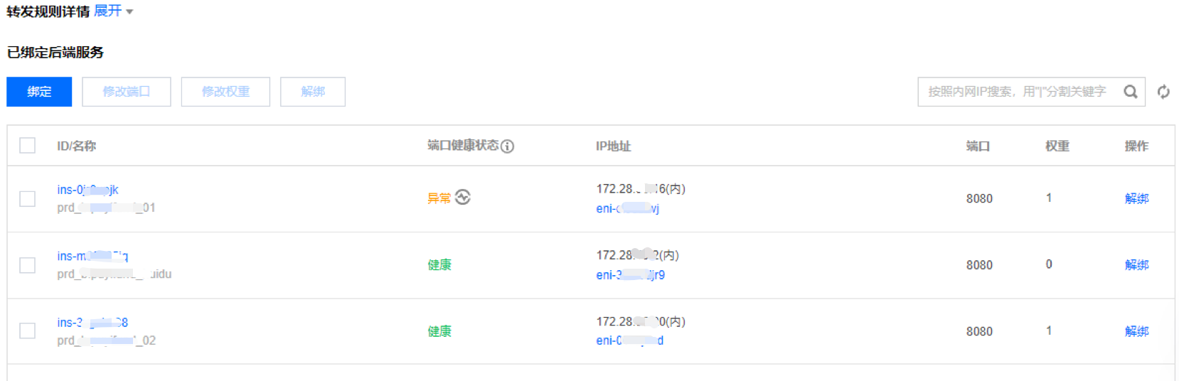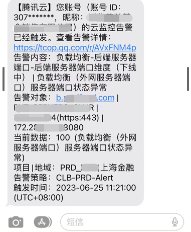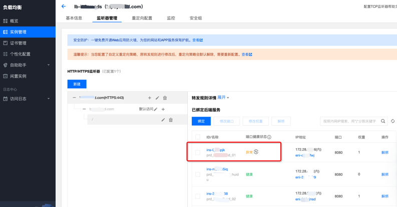 系统重启很快,从用户感官上没有出现接口报错。因 Nginx 进程未启动,导致 CLB 无法探测到该节点,后续业务请求会失败。CLB 显示后端服务端口异常,如下图。
