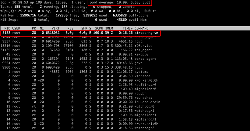 控制台执行完成后,stress-ng-vm 驻留进程自动被清除,不会影响正常的应用访问。